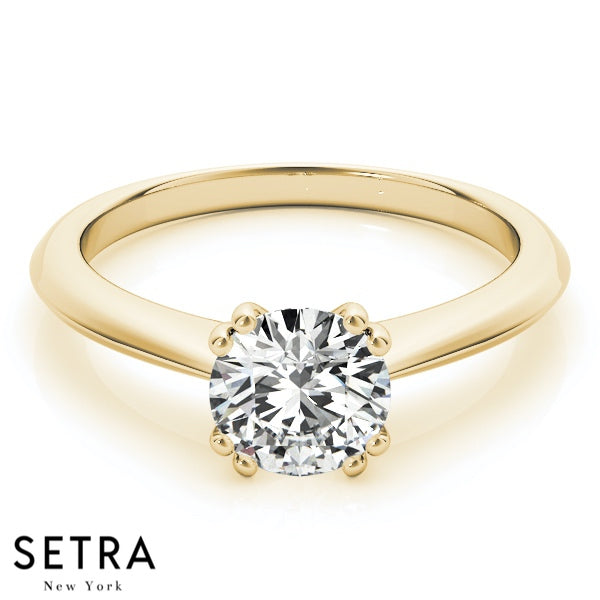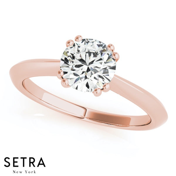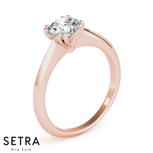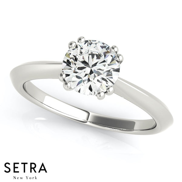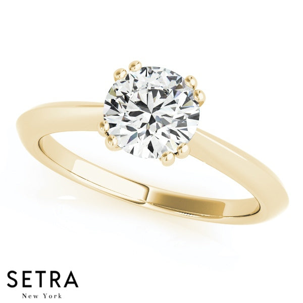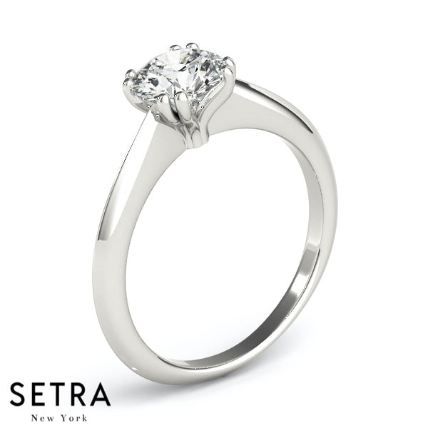 Double PRONG SETTING Round Cut Solitaire Diamond Engagement Ring Solid 14K Gold