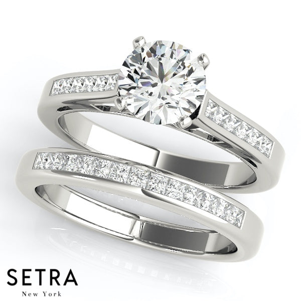 Set of Princess Cut Diamond Engagement Ring 14kt Gold