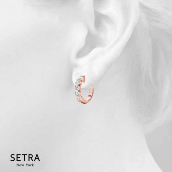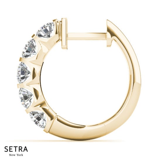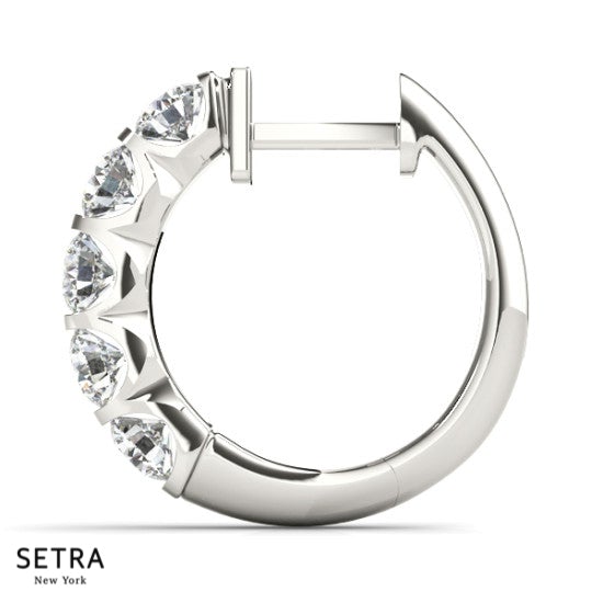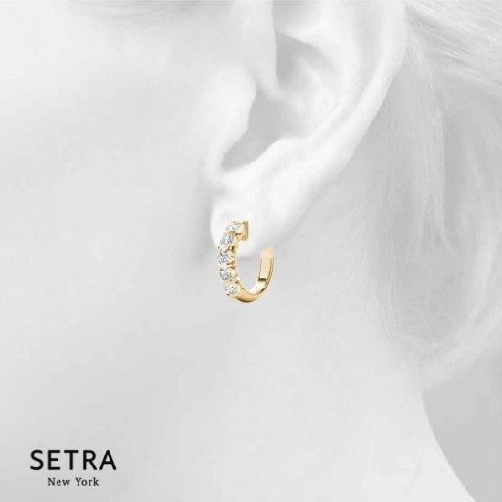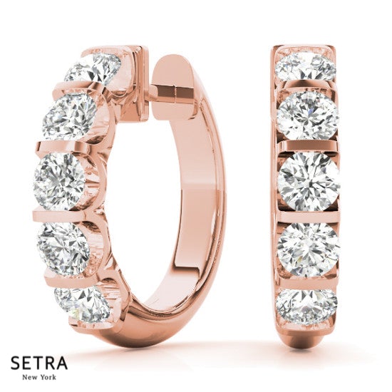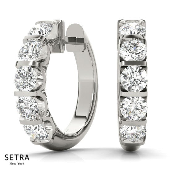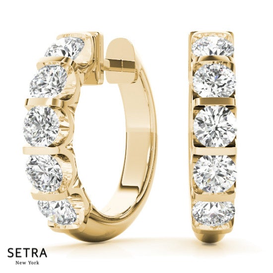 Lab Grown Channel Bar Setting Hoop Diamond Earrings 14kt Gold