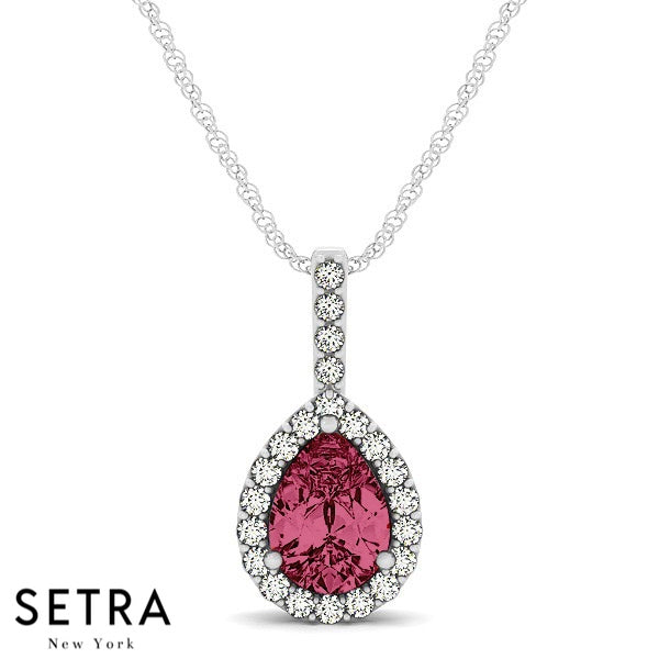 Diamonds & Pear Cut Ruby Necklace 14kt Gold