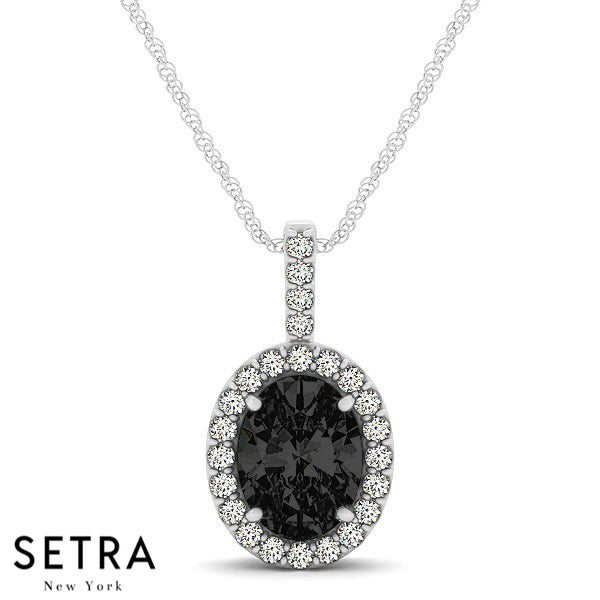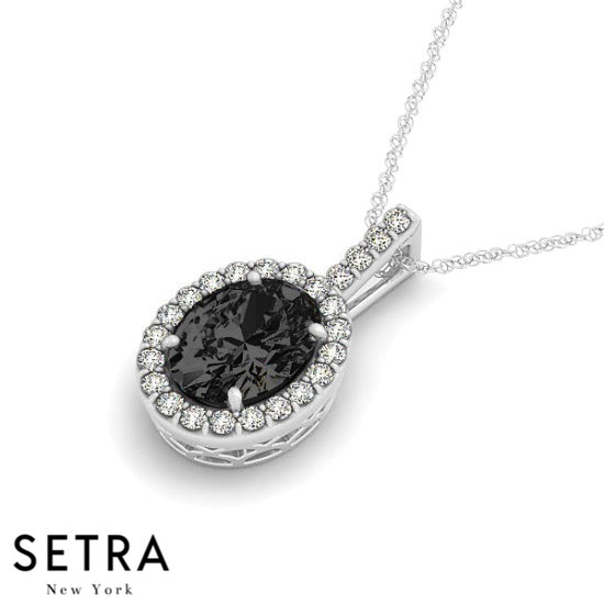 Diamonds & Oval Cut Black D. Necklace 14kt Gold