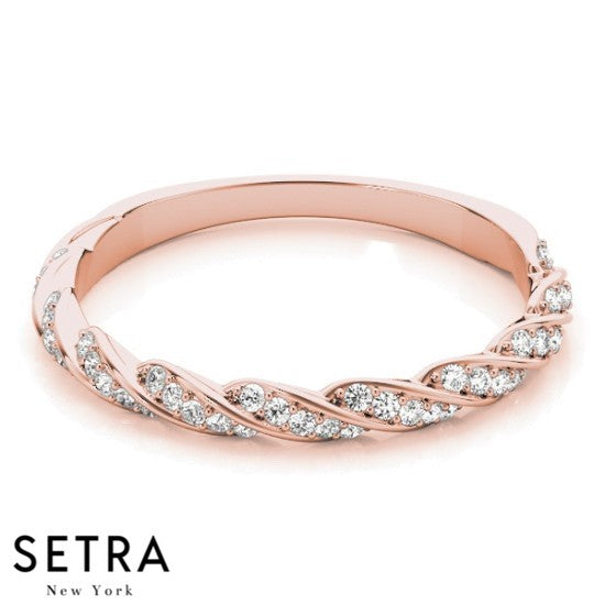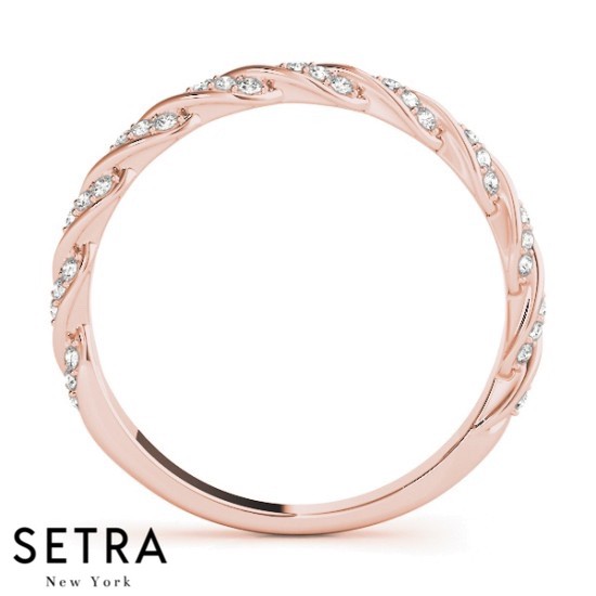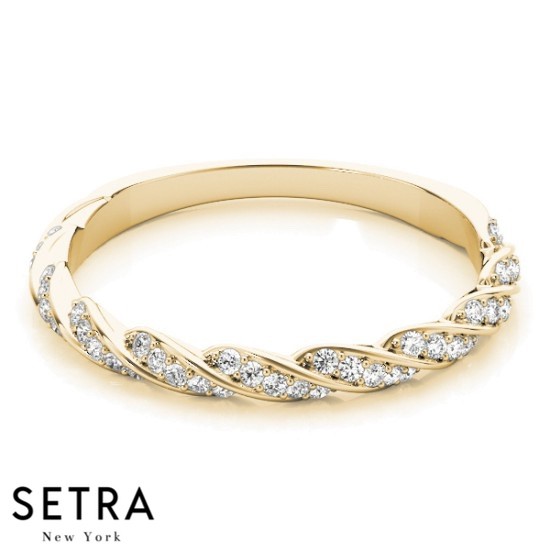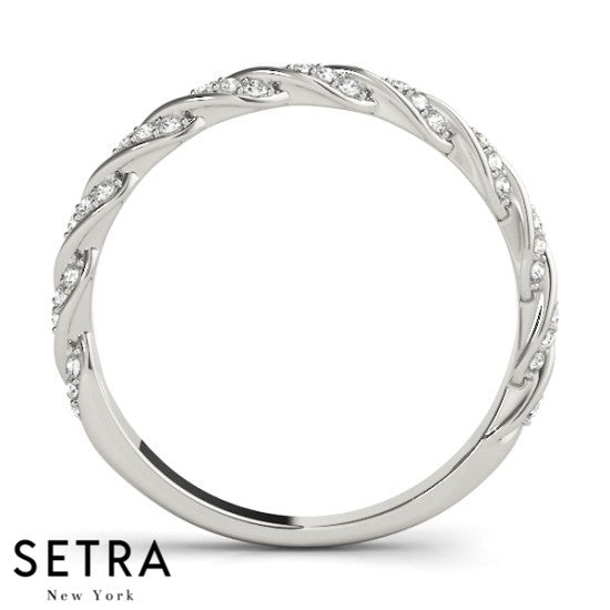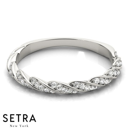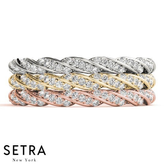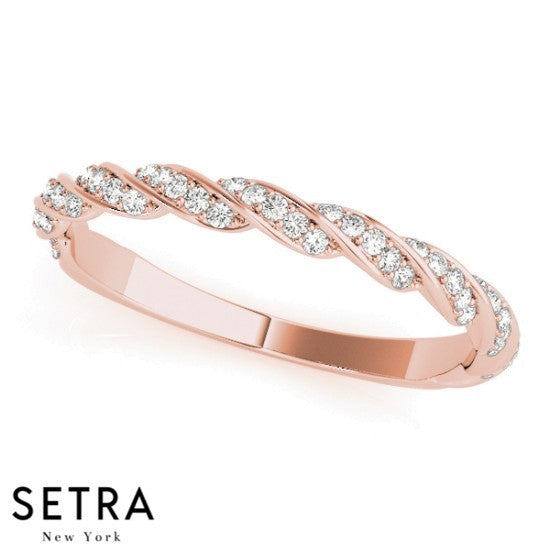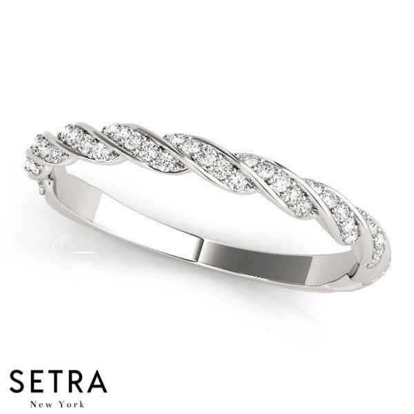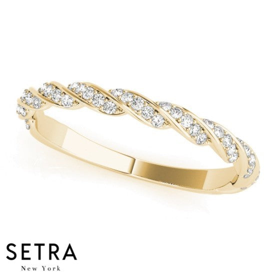 TWISTED BAND DIAMOND WEDDING BAR-SET 14K GOLD RING