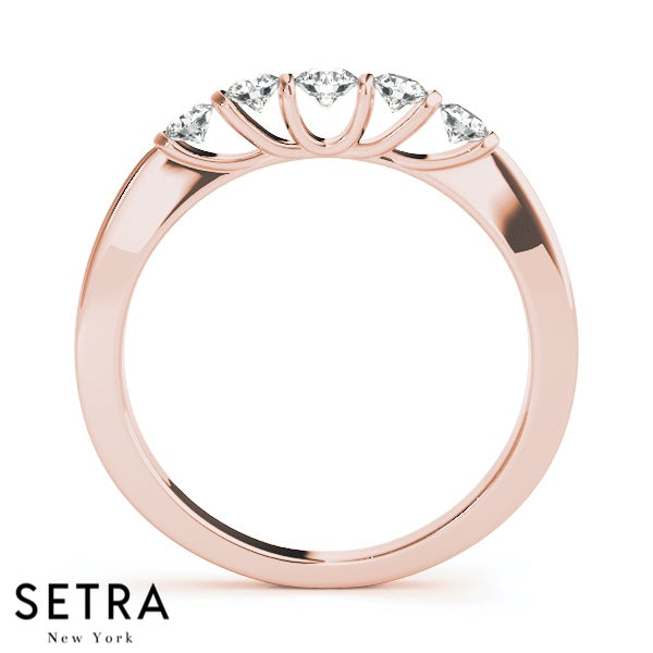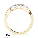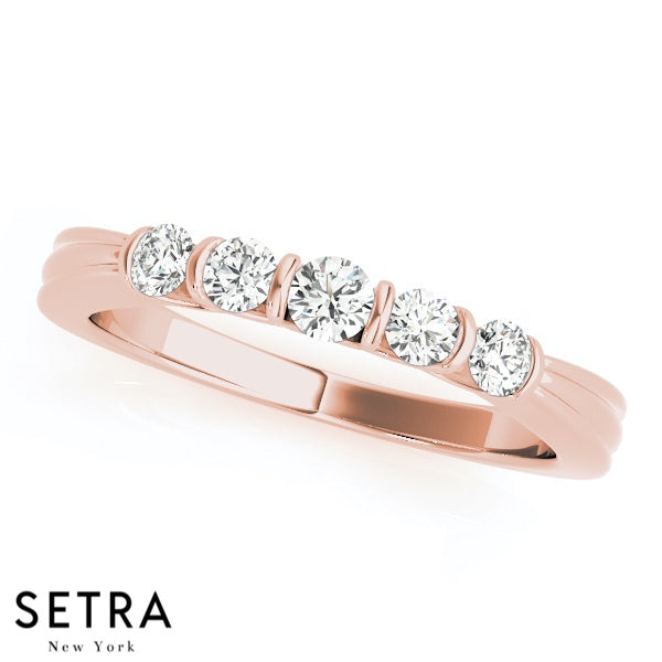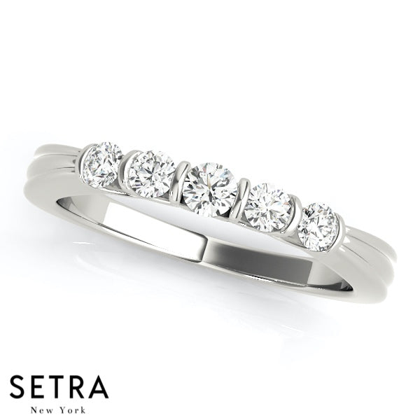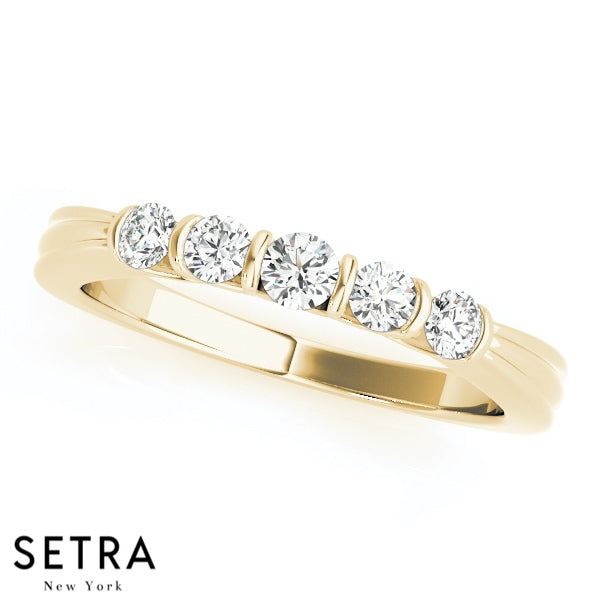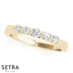 VINTAGE 5 STONE 14K GOLD DIAMONDS BURNISH & BAR SET WEDDING BAND RING