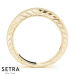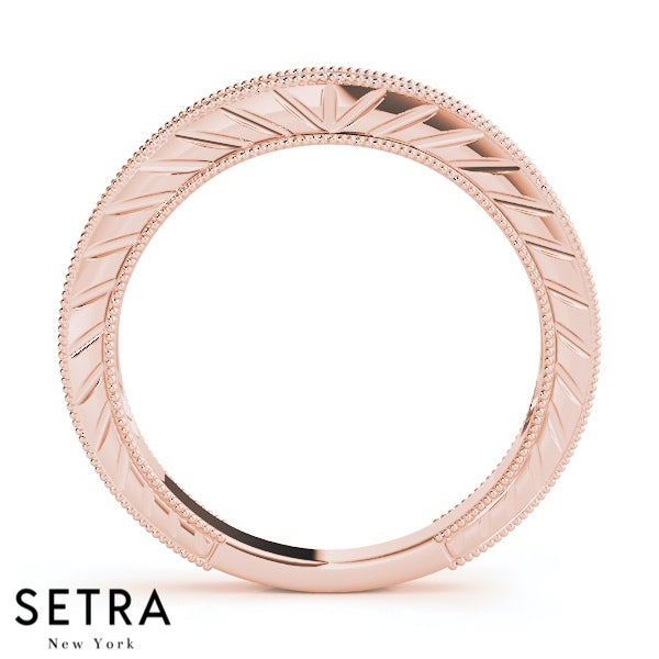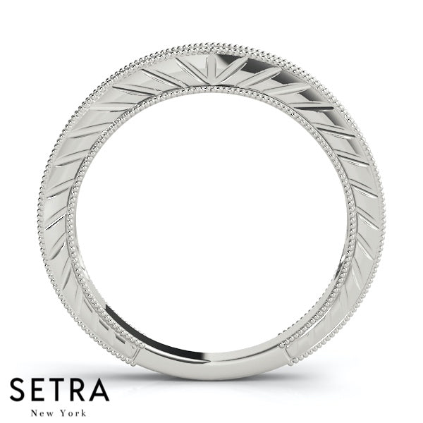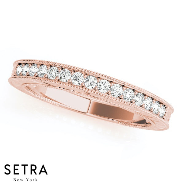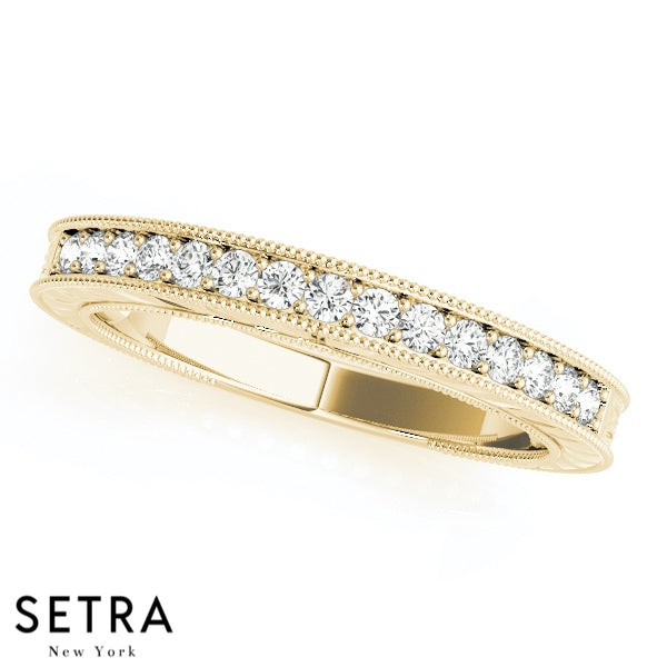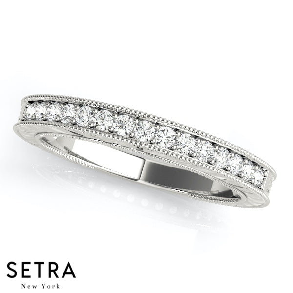 VINTAGE 14K DIAMOND MILGRAIN CHANNEL SET WEDDING BAND