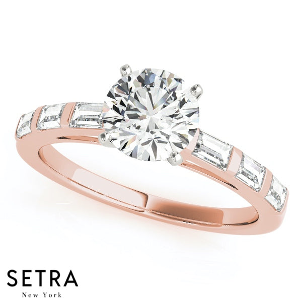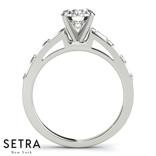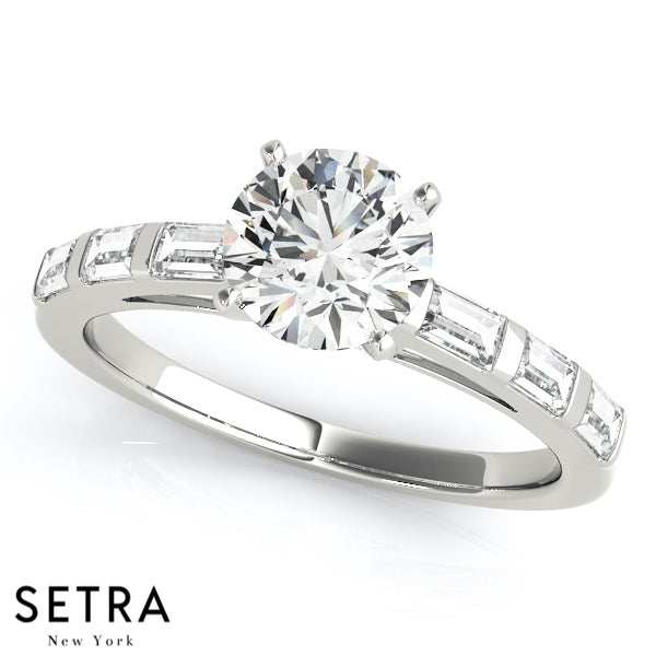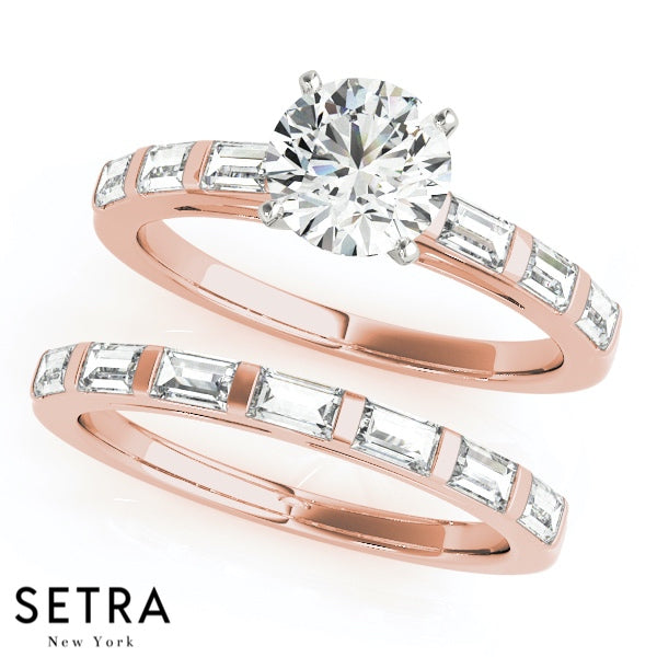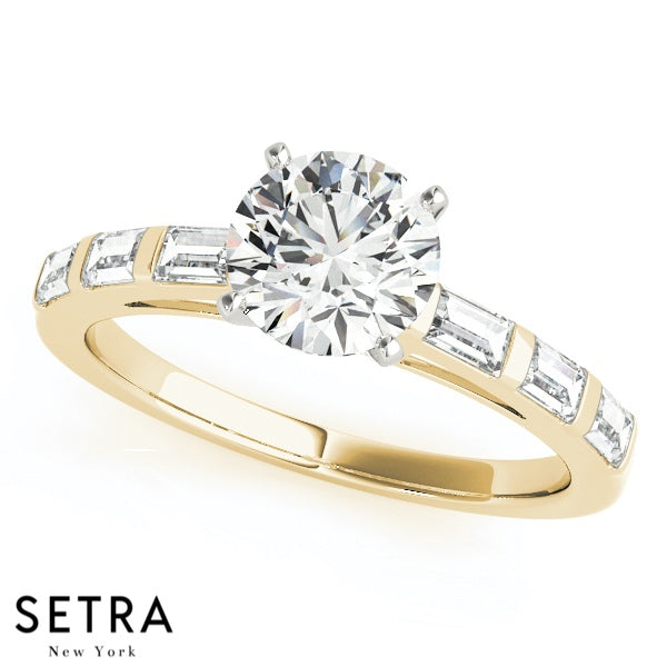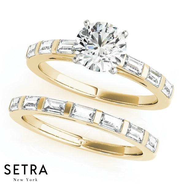 Baguette Cut Diamonds Set Of Engagement 14kt Gold Ring