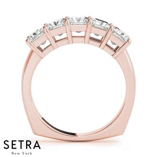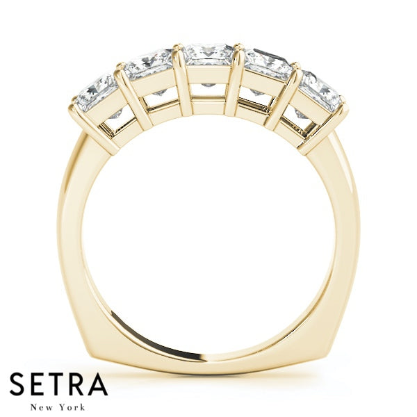 5 Stone Princess Cut Diamond Band 14kt Gold
