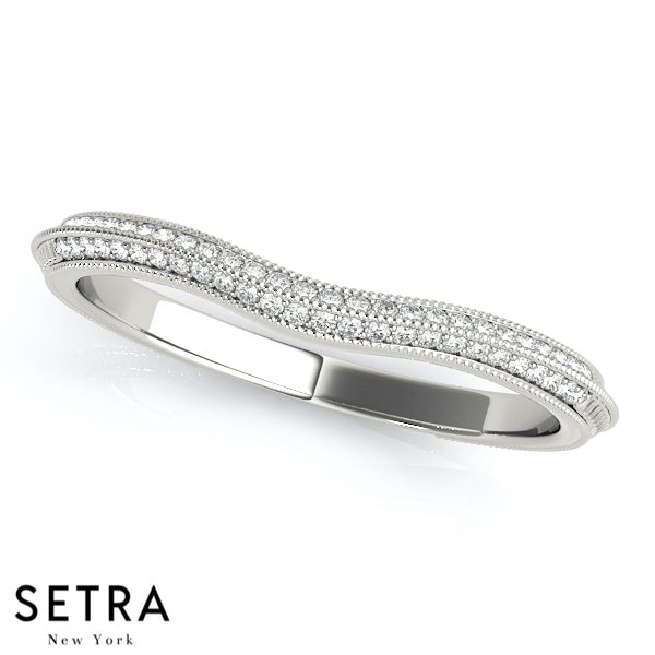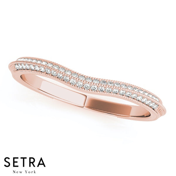 VINTAGE MICRO PAVE IN MILEAGE SET WRAP AROUND CURVED SHAPE BAND DIAMONDS RING 14K GOLD