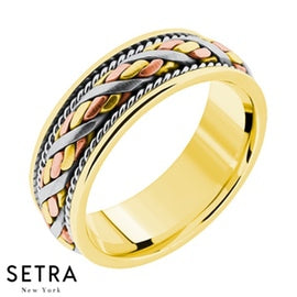 Equality Hand Craft Work Designer For Him & Hers Solid Wedding Band 14K Gold