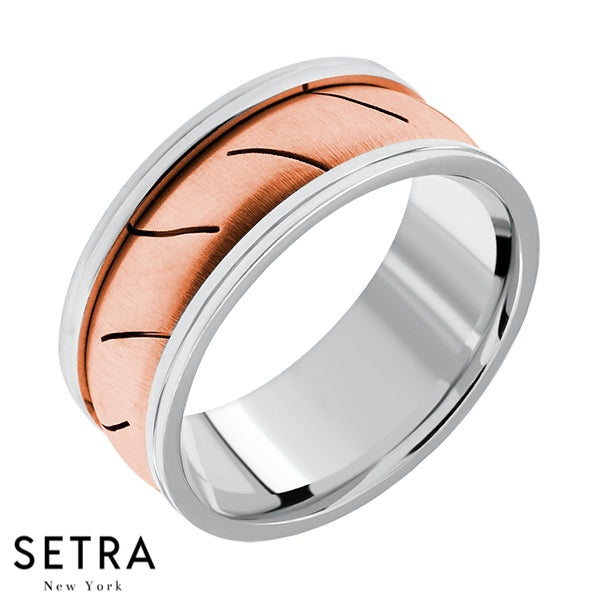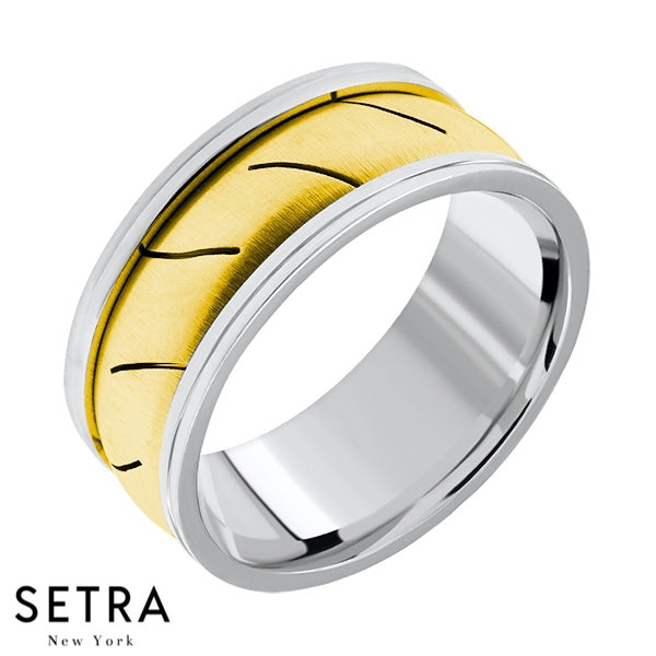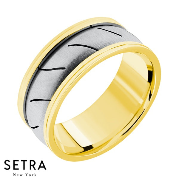 Hand Craft Work Designer For Him & Hers Solid Wedding Band 14K Gold
