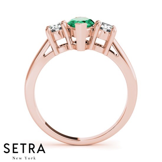 14k Rose Gold Center Marquise Emerald Gem & Diamonds Fashion Ring