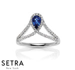 Gypsy Designer Set Pear Sapphire & Diamonds High Dome Open Band 14kt Gold
