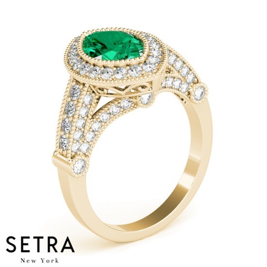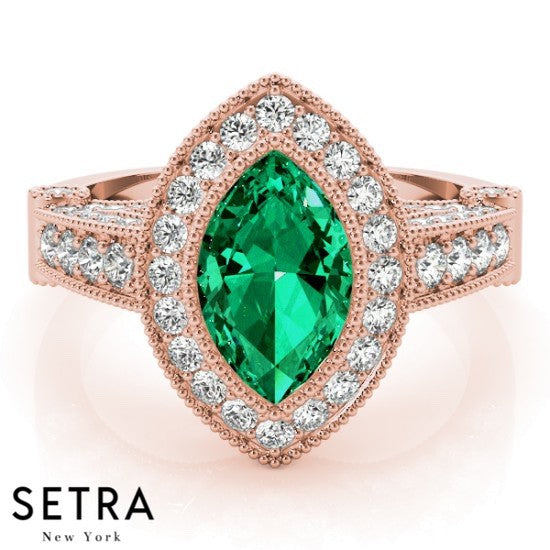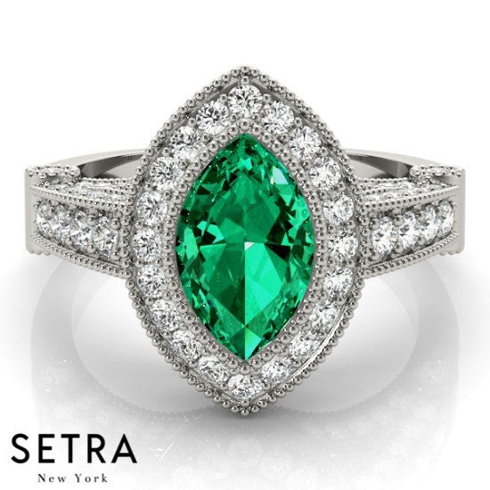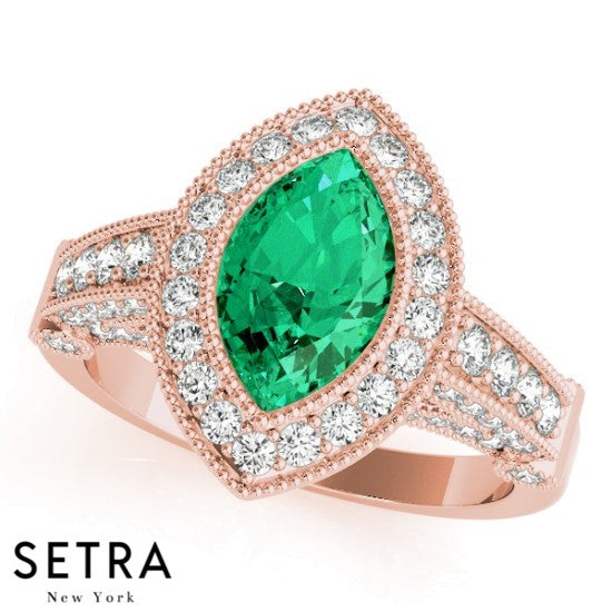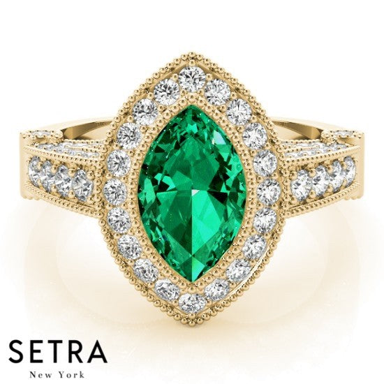Diamonds & Marquise Emerald Cut Gem 14kt Gold