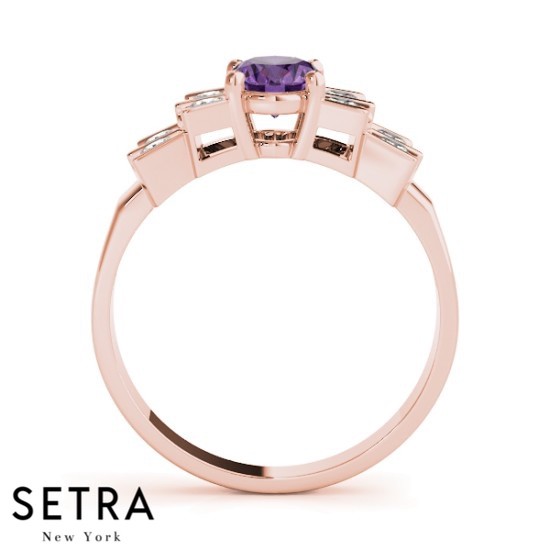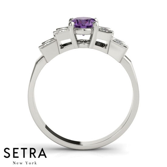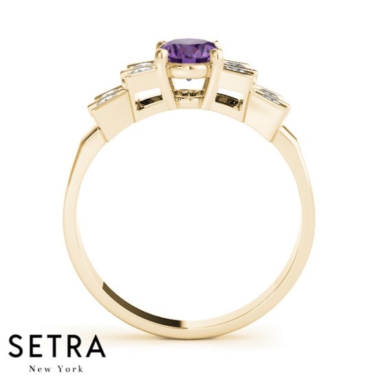 14kt Oval Cut Amethyst & Diamonds Classic Ring