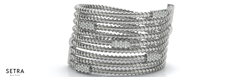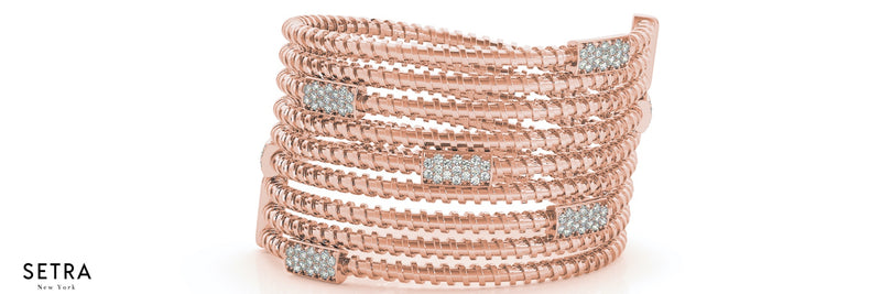 Round Diamonds Women's Open Twist Bangle Solid Bracelet 14k Gold