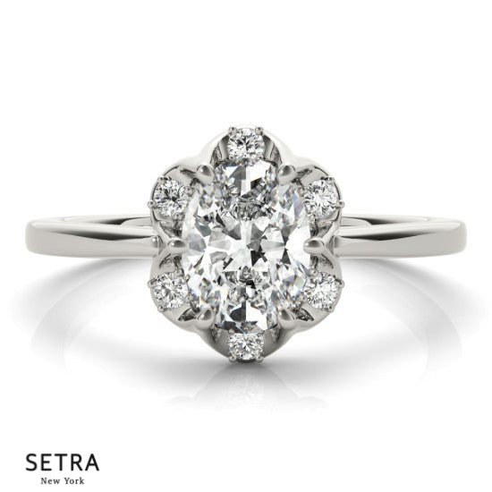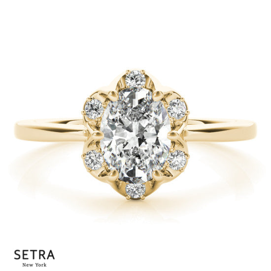 Lab Grown Diamonds Halo Oval Cut Engageme 14kt Gold Rings