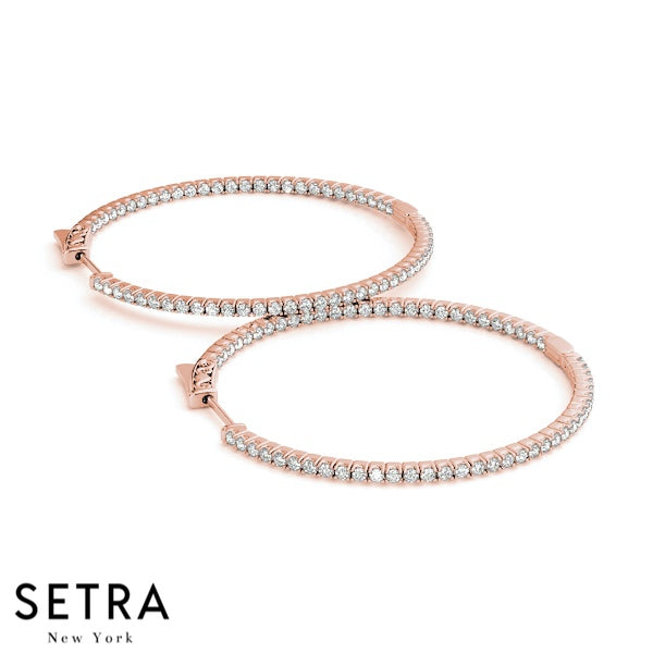 Inside-Out Diamond 52mm Hoop Round Shape Earrings 14K Gold