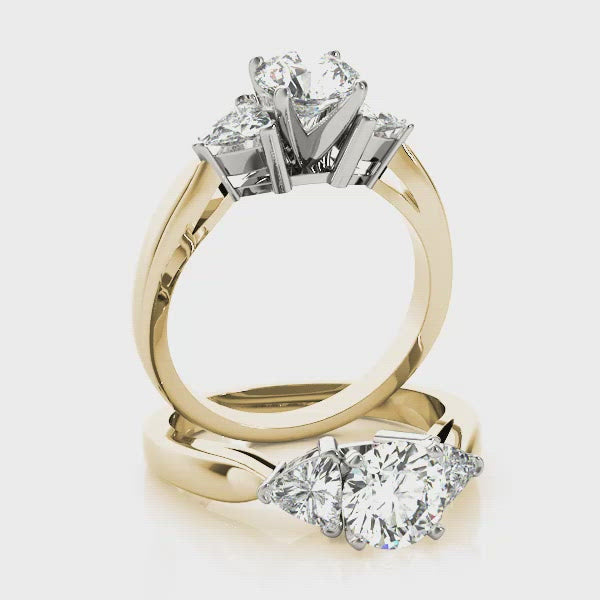 Sides Fancy Triangle Cut Diamonds Engagement Ring 14kt Gold