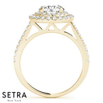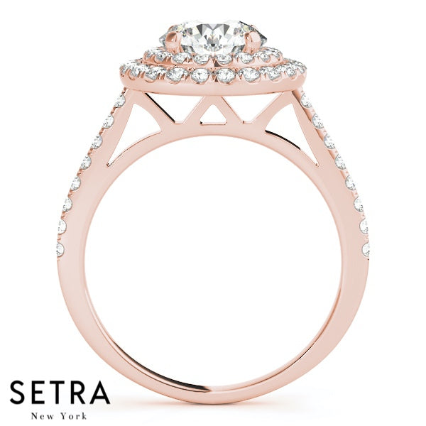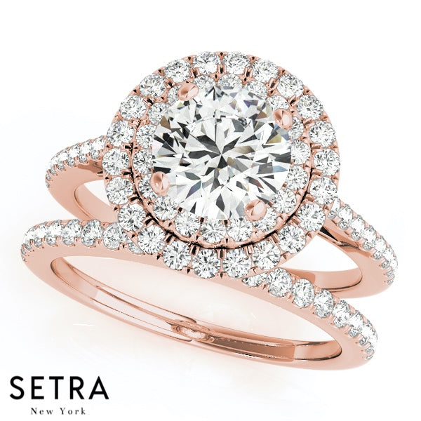 Set Of Diamond Engagement Rings 14kt Gold For Round Cut Diamond