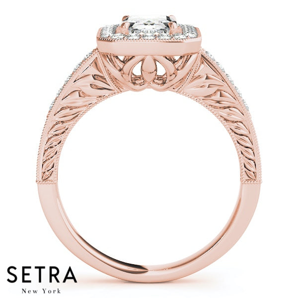 Set Of Engagement Rings 14kt Gold For Emerald Cut Diamond