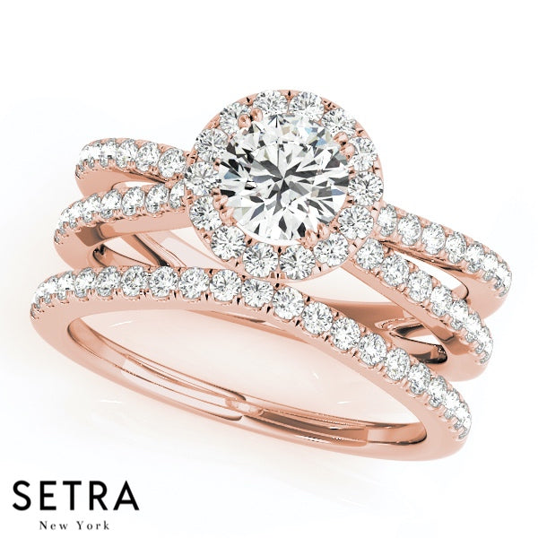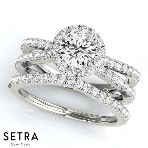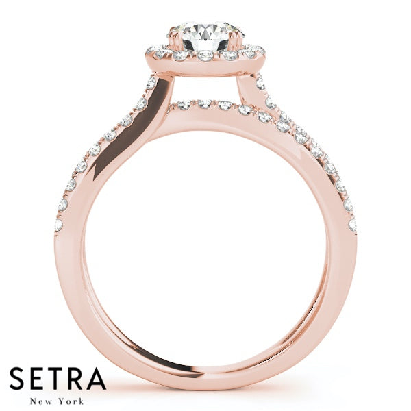 Split Shank Halo Diamond Engagement Ring 14kt Gold
