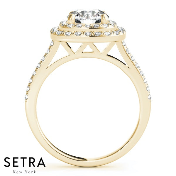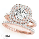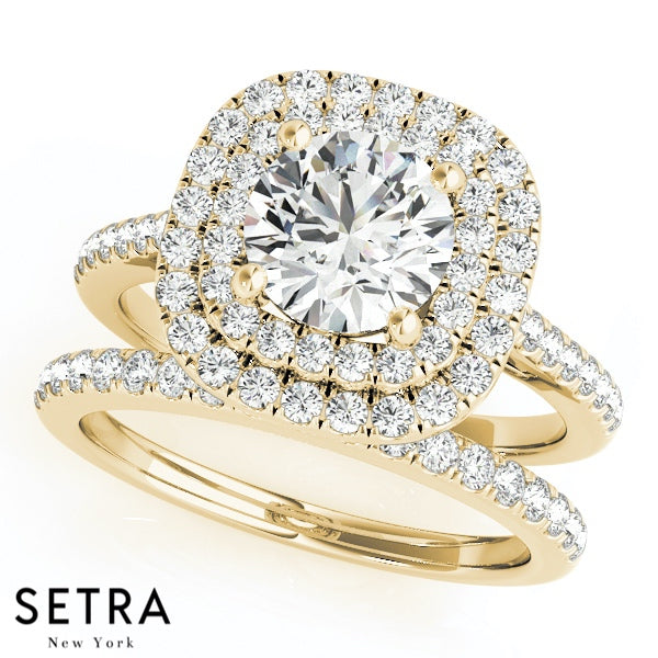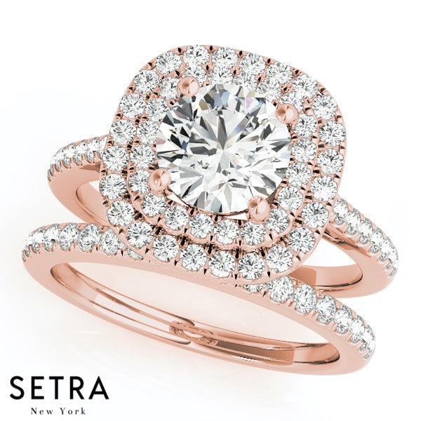 Set Of Engagement Rings 14kt Gold For Round Cut Diamond