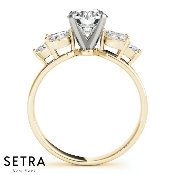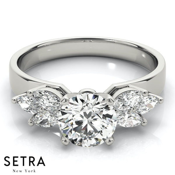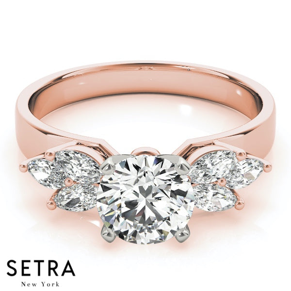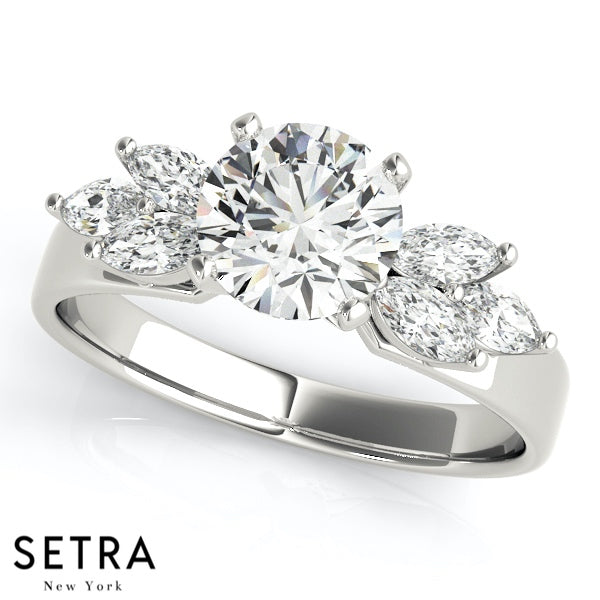 Fancy Side Marquise Diamond Engagement 14kt Gold Ring