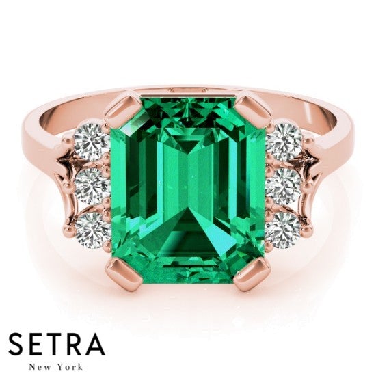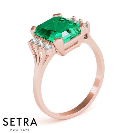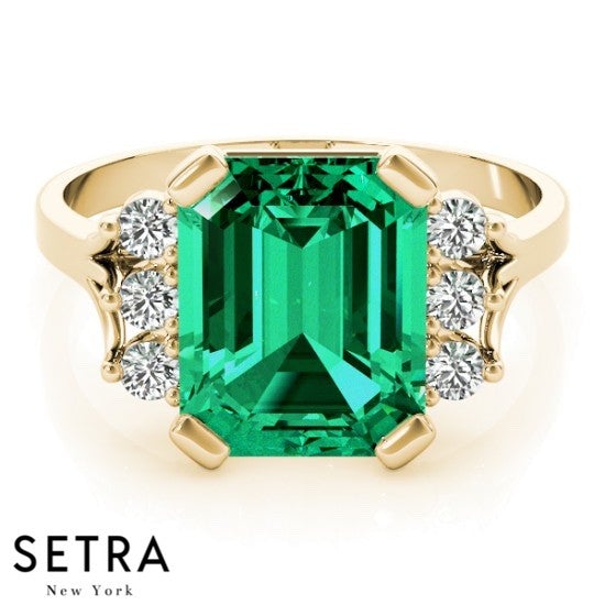 Lab Grown Diamonds Radian Cut Emerald Ring 14kt Gold