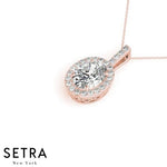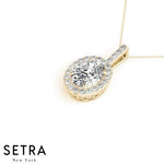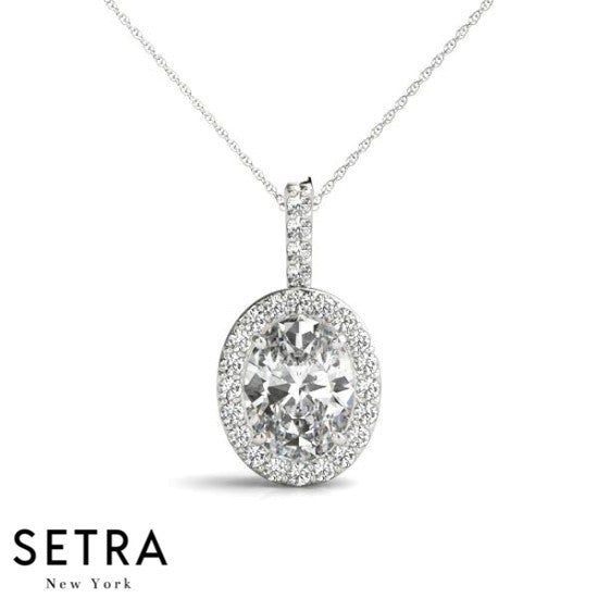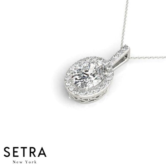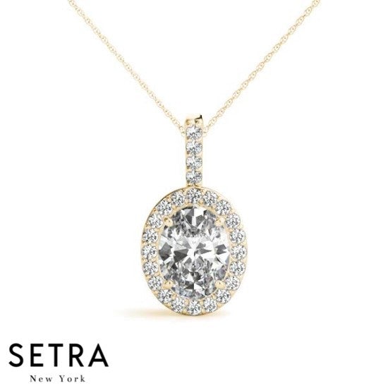Lab Grown Diamonds Halo Center Oval Cut Necklace 14kt Gold