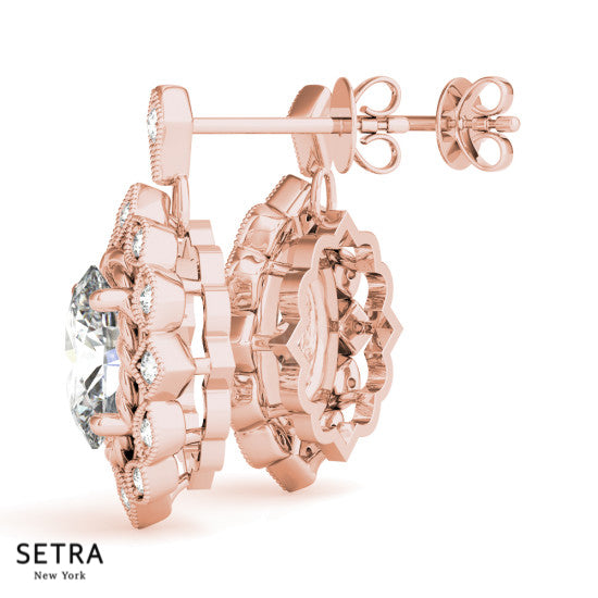 Victorian Antique Filigree Diamond Earrings 14kt Gold