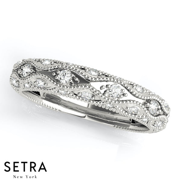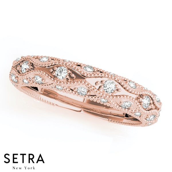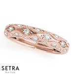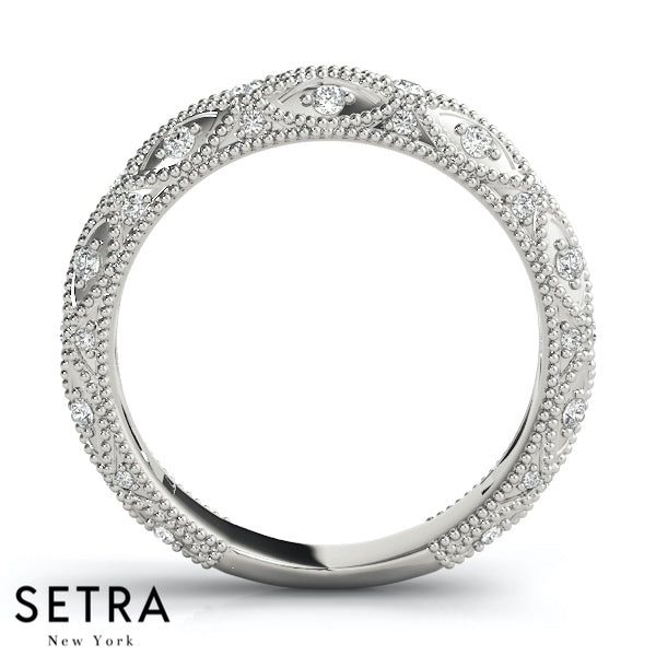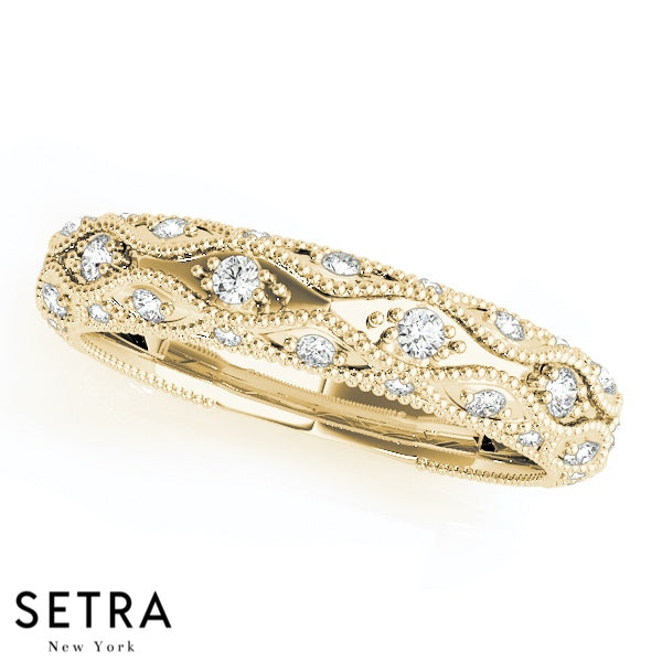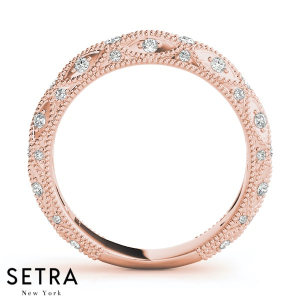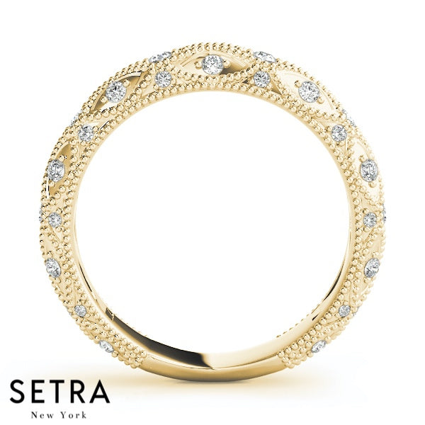 VINTAGE MICRO PAVE SET WEDDING BAND DIAMONDS RING 14K GOLD